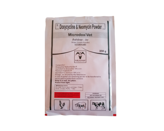 MICRODOX VET is combination of drugs, and is used in control of infections and to prevent mortality.