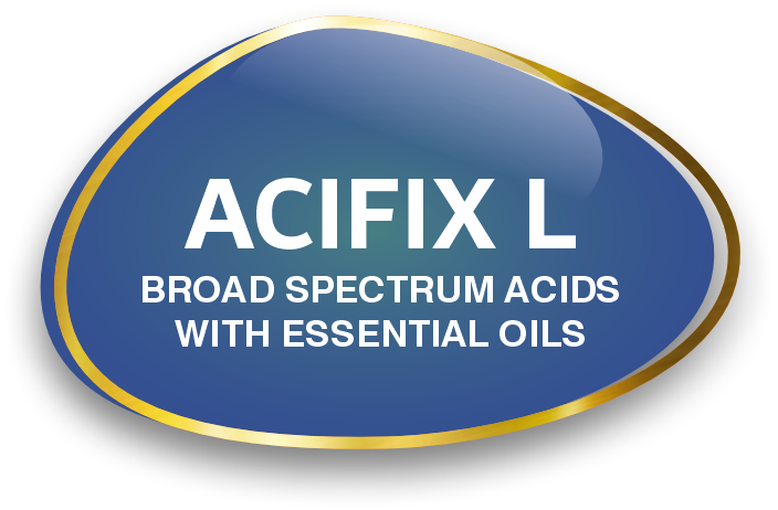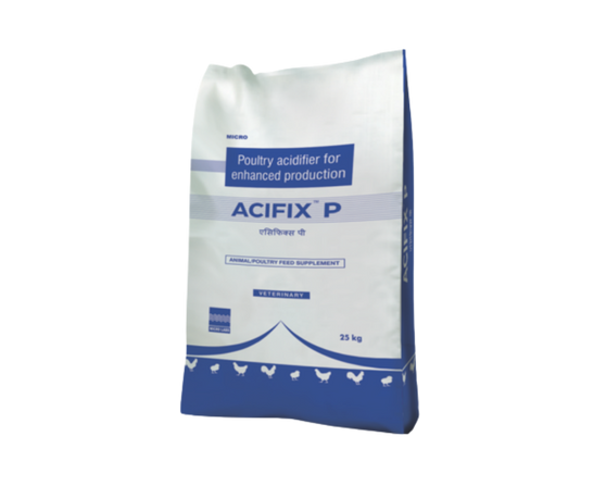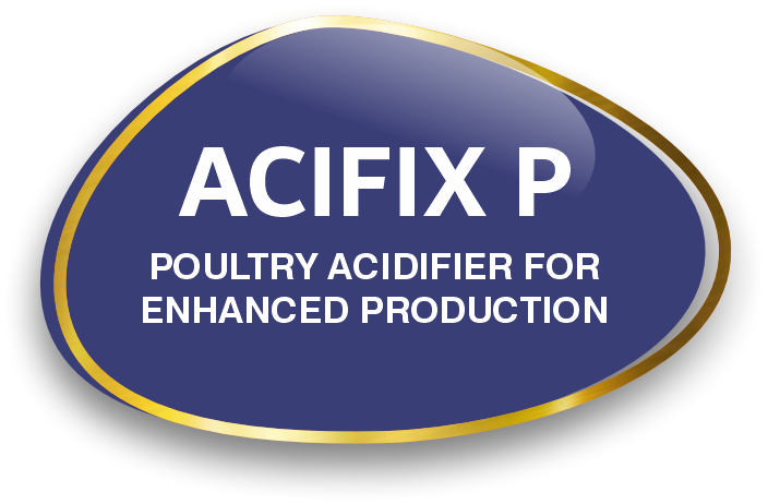 ACIFIX P containing buffered organic Acids & essential oils ensures hygiene by reducing the pathogen load and controls Colibacillosis, Salmonellosis and Clostridial infections.