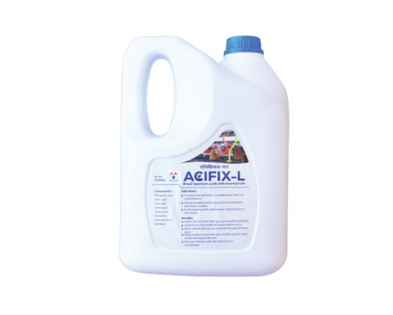 ACIFIX L is a broad spectrum water acidifier which inhibits the growth of pathogens like Salmonella and E.coli in drinking water thus reduces the chances of infection in birds.