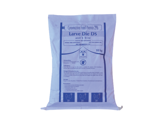 LARVE Die DS is an insect growth regulator which controls larvae of nuisance flies in poultry manure.